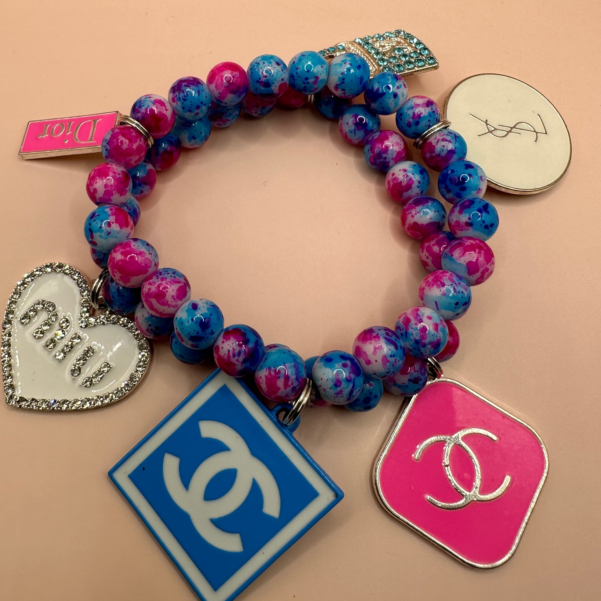 I Dream of Tie Dye Beaded Bracelet Set – Pink & Blue Charm Stack with Designer-Inspired Flair