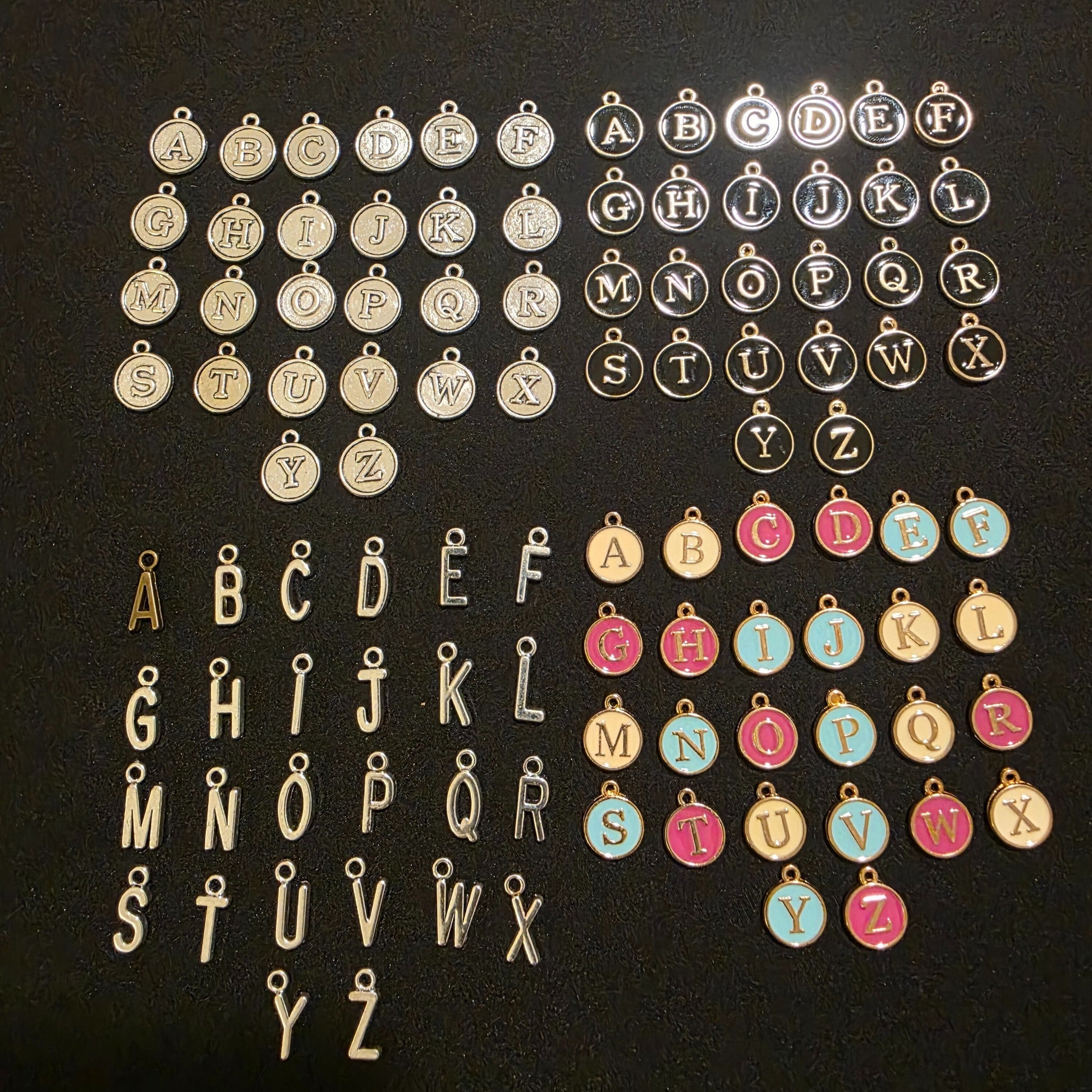 Spell out your style with these beautiful alphabet letter charms, perfect for creating personalized jewelry and accessories! Whether you're crafting custom name bracelets, monogram keychains, or initial necklaces, these high-quality letter charms add a unique and meaningful touch to every design. Available in a variety of finishes—from classic silver and gold to vibrant enamel and rhinestone-studded styles—these charms are a must-have for DIY crafters, gift makers, and jewelry lovers.