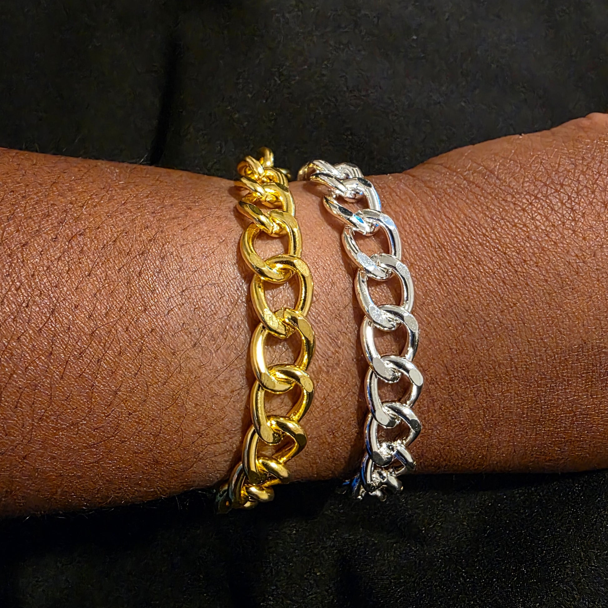 Elevate your wrist game with our Chunky Cuban Link Chain Bracelets, available in radiant gold and sleek silver finishes. These bold and stylish bracelets are perfect for adding a touch of luxury to any look—whether you’re dressing up for a night out or keeping it casual. Made with high-quality, durable materials, they’re designed to shine and last.