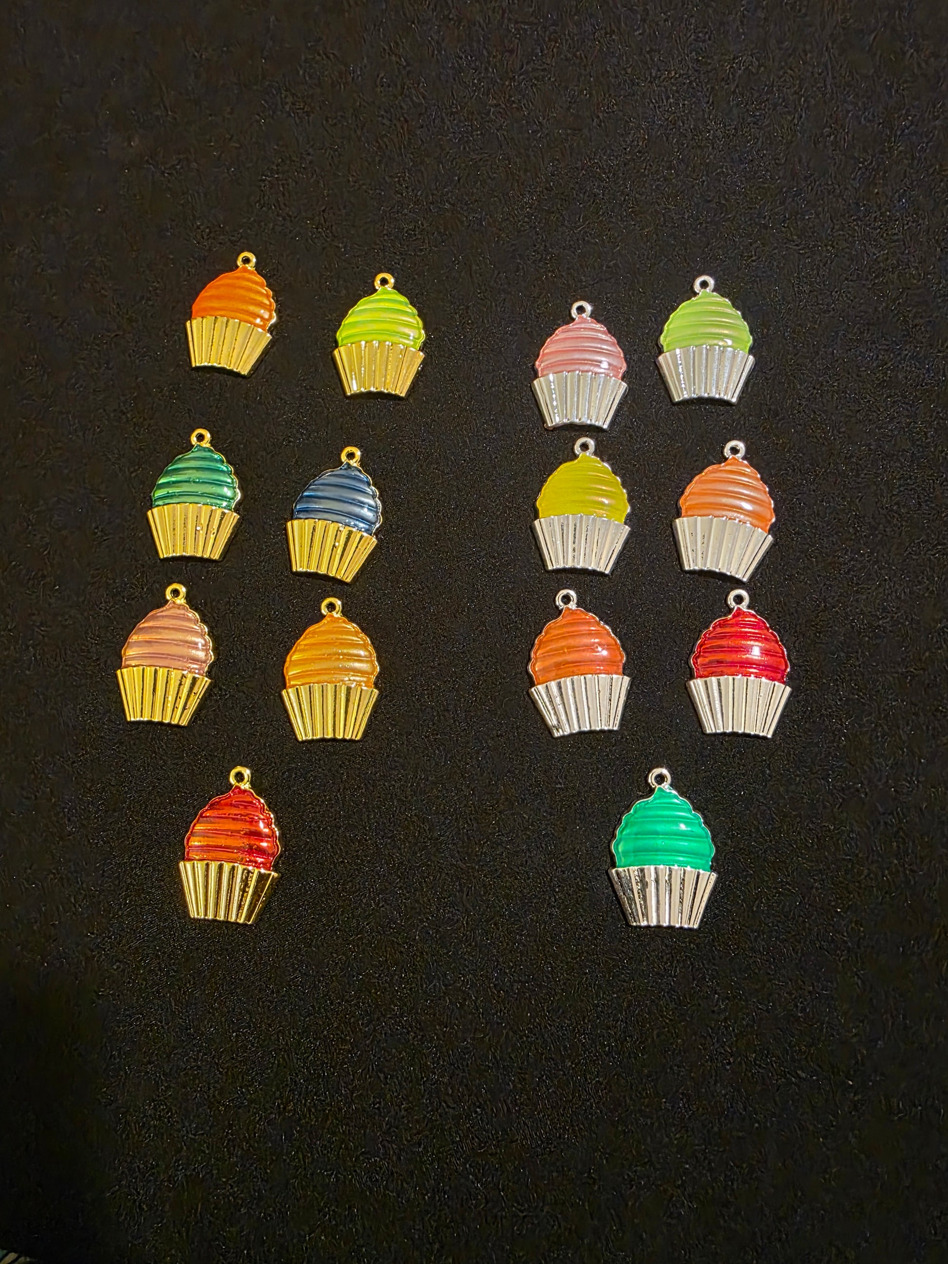 Sweeten up your jewelry creations with these adorable enamel cupcake charms! Each charm features a swirled cupcake top in vibrant colors with a shiny gold or silver cupcake liner base, adding a playful pop of color to your charm bracelets, earrings, keychains, and DIY accessories. These mini cupcake charms are perfect for dessert-themed designs, birthday gifts, or whimsical everyday wear. Whether you're crafting for kids, bakers, or just the sweet at heart, these charms are a deliciously fun addition to your collection!