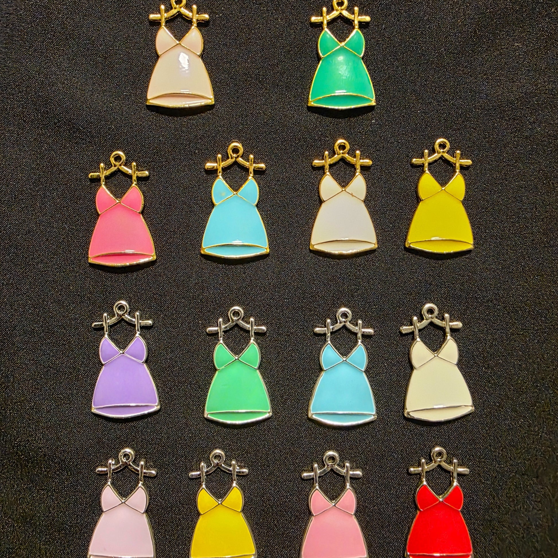 Turn up the fashion flair in your DIY jewelry with these chic enamel dress charms! Shaped like elegant little dresses hanging on tiny hangers, these charms come in a rainbow of vibrant and pastel colors with your choice of silver-tone or gold-tone outlines. Perfect for fashion-themed charm bracelets, boutique-style accessories, or gifts for style lovers, these miniature dress charms bring a playful yet polished look to any handmade creation.