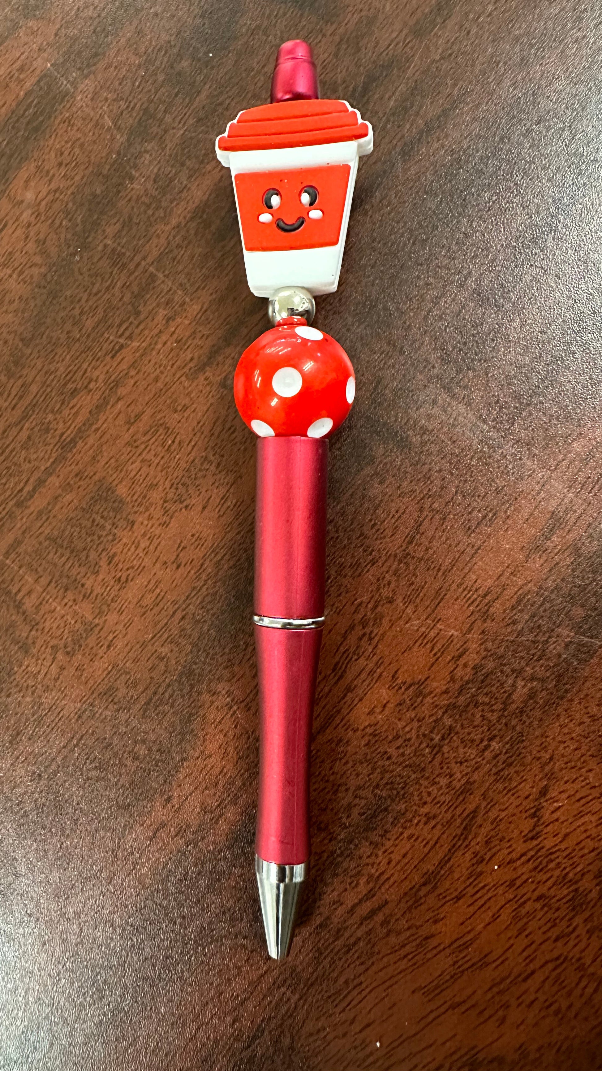 Add a pop of personality to your desk with this adorable red beaded pen featuring a smiling drink cup topper! This fun and functional pen is perfect for students, teachers, office workers, and gift lovers who want to brighten up their writing routine. The eye-catching red metallic body is accented with a bold polka-dot bead and topped with a cute rubber drink charm that brings instant joy.