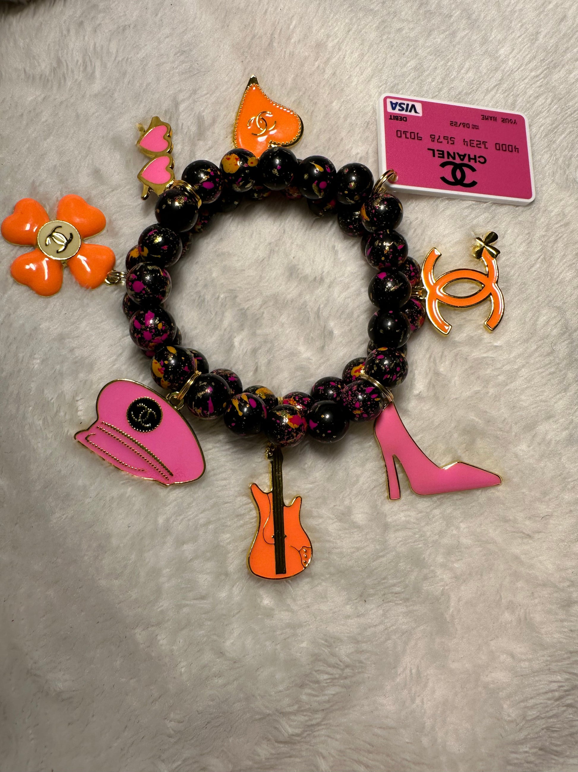 2-piece bracelet set made with 10mm beads and pink and orange charms
