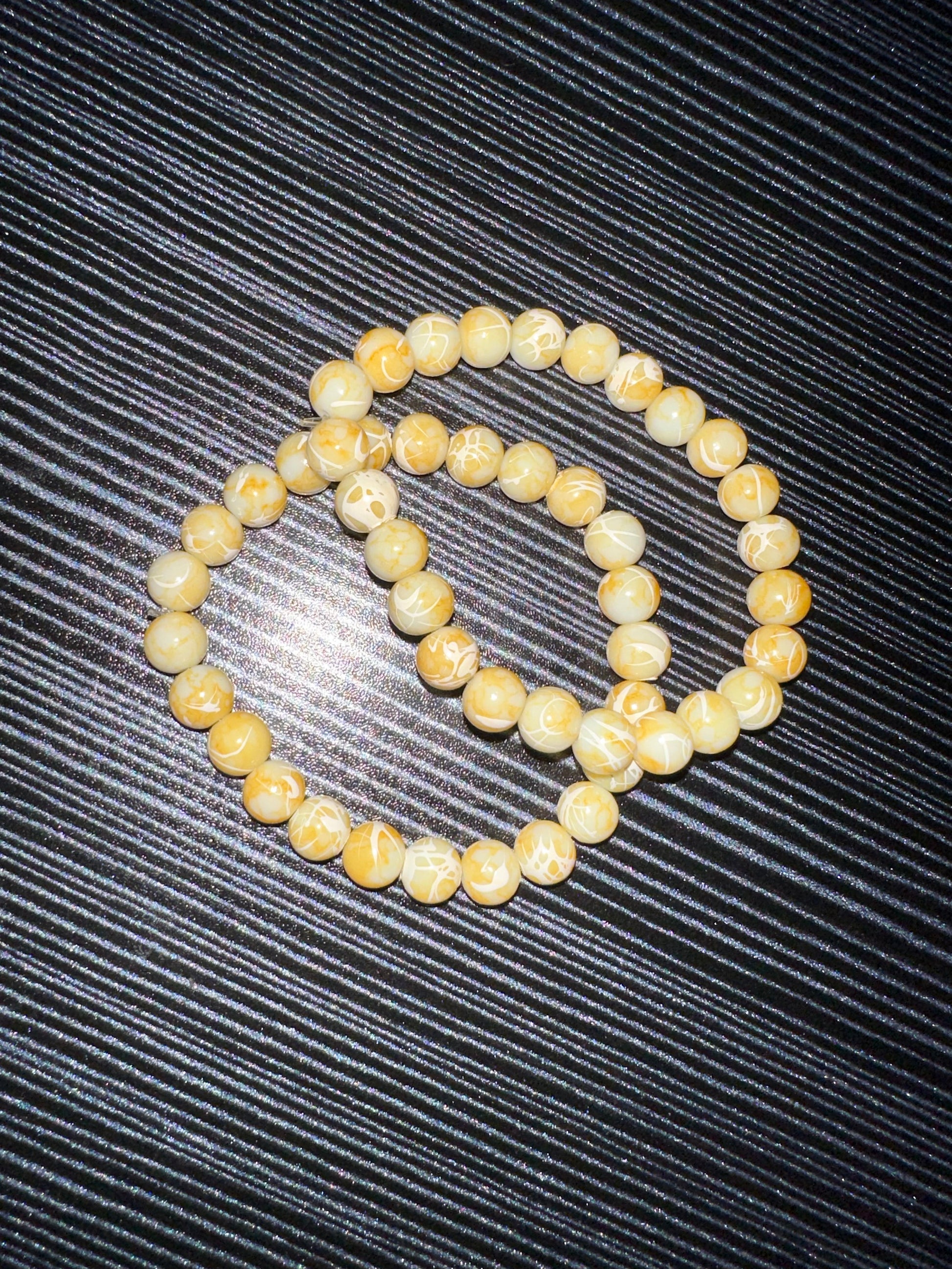 This yellow and white beaded bracelet is nice and simple with a slight pop of color